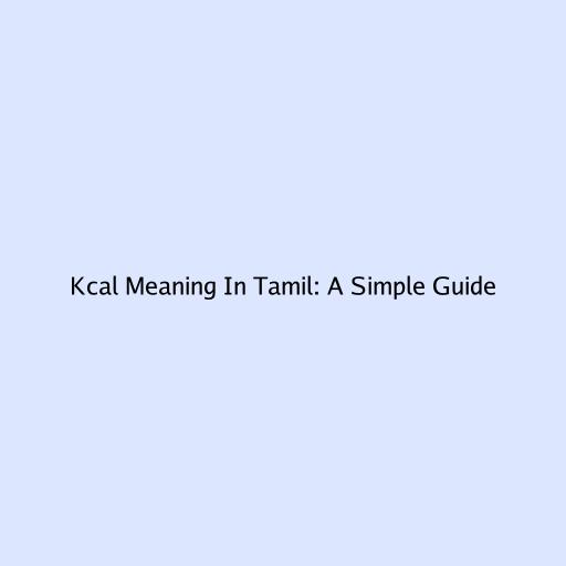 Kcal Meaning In Tamil: A Simple Guide
