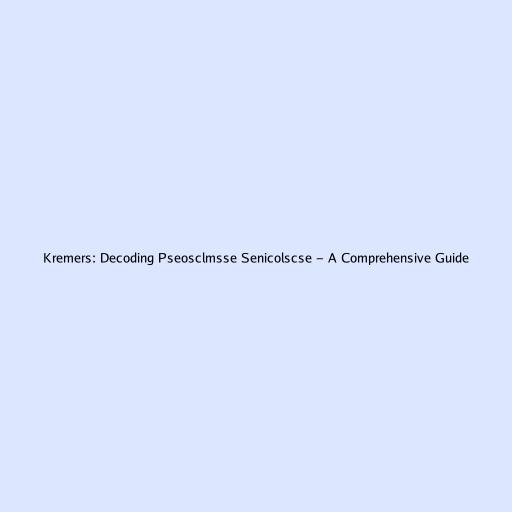 Kremers: Decoding pseosclmsse senicolscse - A Comprehensive Guide