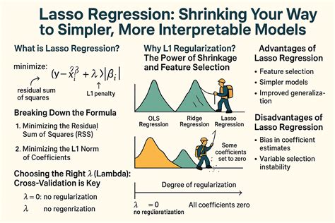 When we talk about Lasso Regression , we’re referring to a fantastic technique that stands for Least Absolute Shrinkage and Selection Operator . Sounds fancy, right? But what it really means is that Lasso helps us build linear regression models that are not only good at predicting but also excellent at feature selection . Imagine you have a dataset with hundreds, or even thousands, of potential predictor variables. Without a technique like Lasso, you’d be staring down the barrel of a highly complex model, prone to overfitting, where your model performs spectacularly on the data it’s seen but falls flat on its face when presented with new, unseen data. This is where Lasso steps in, offering a clever way to shrink some of those regression coefficients all the way down to zero, effectively kicking out the less important features. This process leads to models that are much easier to understand, more parsimonious, and generally perform better in real-world scenarios by focusing on the truly influential variables. It’s like having a meticulous editor for your data, cutting out all the fluff to reveal the core story.