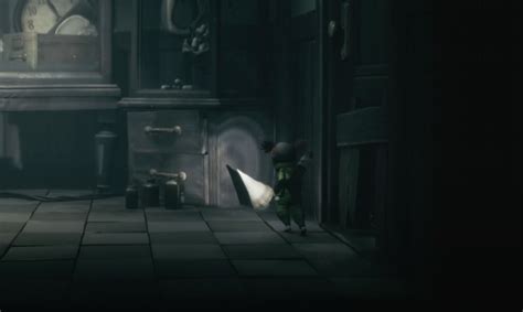 • After crawling under the table with the long arms, continue down the hallway. You’ll enter a room and see the Nome hiding in the corner.
