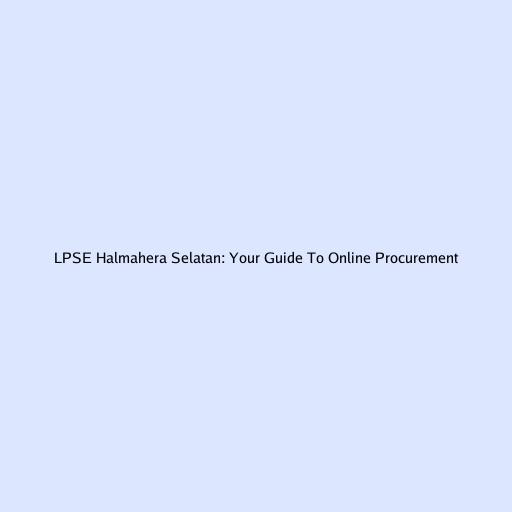LPSE Halmahera Selatan: Your Guide To Online Procurement