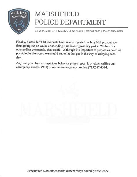 The Marshfield Police Department plays a vital role in ensuring the safety and well-being of the Marshfield, Wisconsin community. Through their commitment to integrity, professionalism, and respect, they strive to build trust and foster positive relationships with residents and businesses. By offering a wide range of services, engaging in community outreach, and staying connected with the public, the Marshfield Police Department is dedicated to making Marshfield a safe and thriving place to live, work, and visit. So, next time you see an officer, give them a wave and thank them for their service! These men and women are on the front lines, working hard to keep our community safe and secure. Remember, a strong community-police partnership is key to a safer Marshfield.