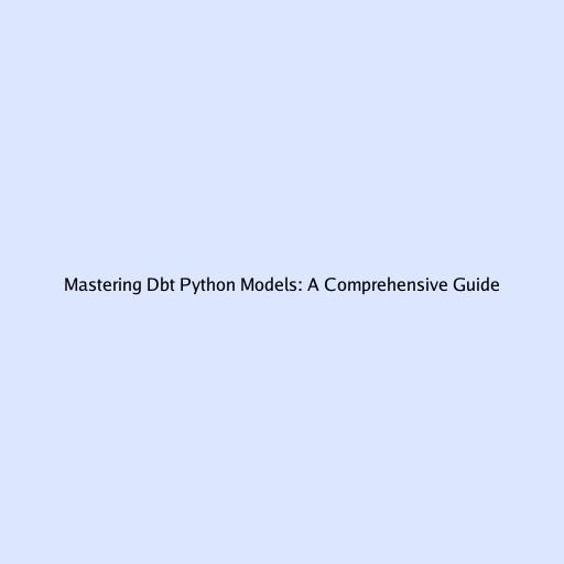 Mastering Dbt Python Models: A Comprehensive Guide