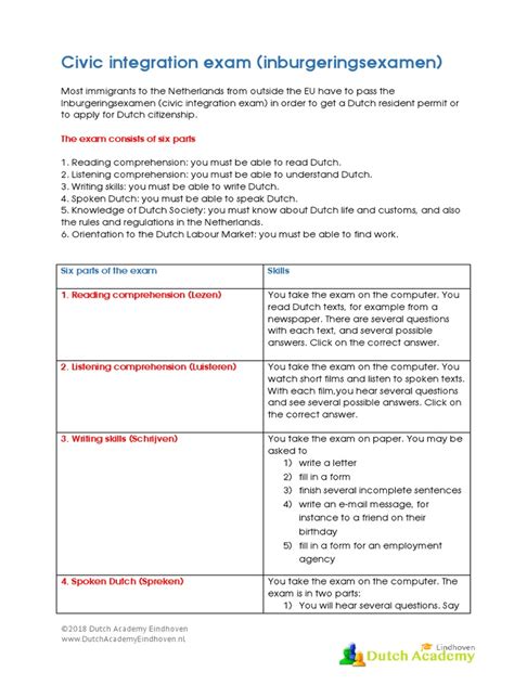 • Language Practice: The exam is in Dutch, so ensure your language skills are up to par. Practice reading, listening, and speaking in Dutch as much as possible. This will help you understand the questions and express your answers more effectively. Consider joining a Dutch language course or finding a language partner to practice conversational skills.