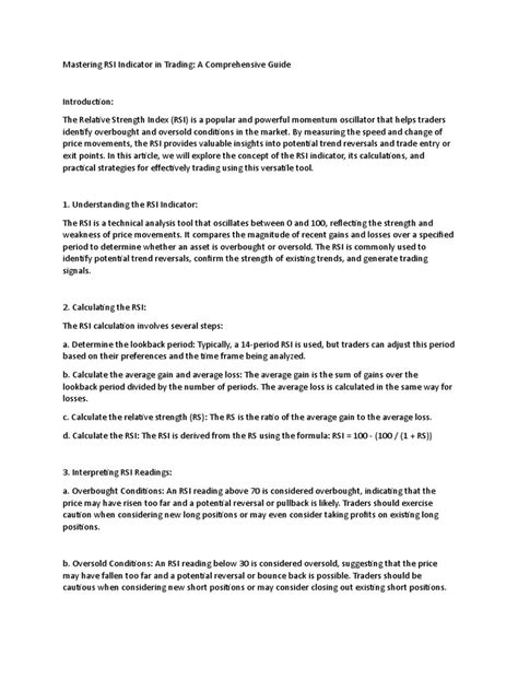 Mastering the RSI Trading Setup: A Comprehensive Guide