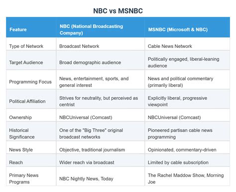 To make it super clear, let’s break down the major differences between MSN and MSNBC . Think of it as a quick guide to help you tell them apart. MSN is your general digital portal. It has a broad focus. It’s like a massive online magazine rack with a little bit of everything. It’s your place for news, entertainment, lifestyle tips, and various services. The goal of MSN is to appeal to a wide audience with a diverse range of content. On the other hand, MSNBC is more of a specialized news source. Its primary focus is on in-depth news coverage, political analysis, and current events. Think of it as a dedicated news channel. MSNBC offers detailed reports, expert opinions, and breaking news, often with a particular political perspective. MSN typically uses a more general, user-friendly tone, aiming to make its content accessible to everyone. MSNBC can be more formal and analytical, geared towards those who want in-depth information. MSN usually has a diverse range of content from various sources, presenting news from different perspectives, and entertainment from numerous channels. MSNBC centers its coverage on the perspectives and content of NBC News and related entities. It has a more integrated approach, focusing on specific stories with a consistent viewpoint. MSN is tailored for a broad audience. It attracts people seeking a general overview of a wide variety of topics. MSNBC is best suited for those who are highly engaged with news, especially political and social issues. These individuals seek deep analysis and a strong perspective on current events.