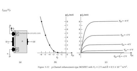 Now, let’s switch gears and talk about the p-channel E-MOSFET . This one is the mirror image, in a sense, of the n-channel version. Here, the source and drain are made of p-type material, and the substrate is n-type. For a PMOS, to create a conducting channel, you need to attract holes to the region under the gate. Holes are positive charge carriers. To attract positive charge carriers to the gate region, you need to apply a negative voltage to the gate terminal relative to the source (VGS). Just like with the NMOS, this negative VGS must be more negative than a certain threshold voltage (Vth) for the transistor to turn on. This threshold voltage for a PMOS is typically a negative value. When VGS is more negative than Vth, it repels the free electrons from the n-type substrate away from the gate oxide, leaving behind positively charged holes. These accumulated holes form a p-type conducting channel between the source and drain. As you make VGS more negative (i.e., further below Vth), the channel becomes more conductive, and the drain current (ID) increases. So, the crucial difference is the polarity of the gate-to-source voltage required to turn it on: positive for NMOS, negative for PMOS. The transfer characteristic curve for a PMOS will reflect this. On the graph, VGS will be on the x-axis, but the interesting part will be in the negative region. Below the negative Vth, ID will be practically zero. As VGS becomes more negative than Vth, ID will start to increase (often shown as a positive current value, or sometimes a negative current depending on convention, but the magnitude increases). Understanding this polarity reversal is vital for correctly designing circuits using both NMOS and PMOS transistors, often found together in complementary configurations like CMOS logic.