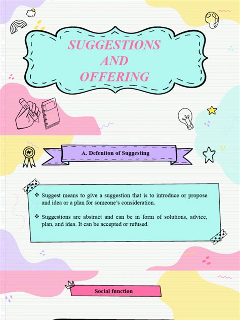 Okay, so what exactly are offers and suggestions ? Offers are when you propose to do something for someone. Think of it as saying, “Hey, I’m willing to help you with that!” Suggestions , on the other hand, are ideas or plans you put forward for consideration. It’s like saying, “What if we tried doing this?”