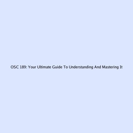 OSC 189: Your Ultimate Guide to Understanding and Mastering It