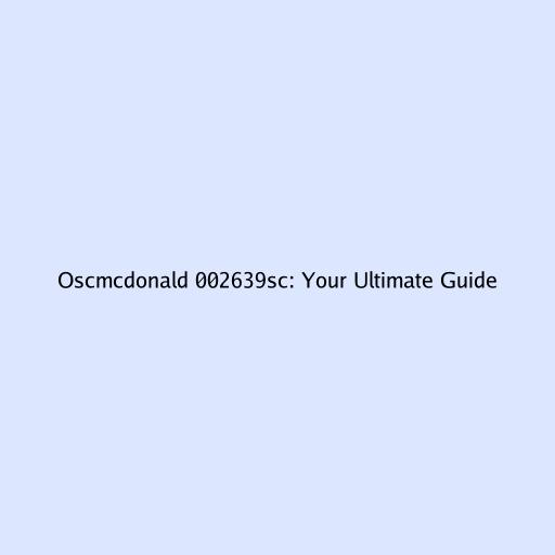 Oscmcdonald 002639sc: Your Ultimate Guide