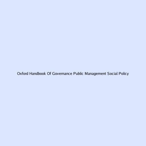 Oxford Handbook Of Governance Public Management Social Policy