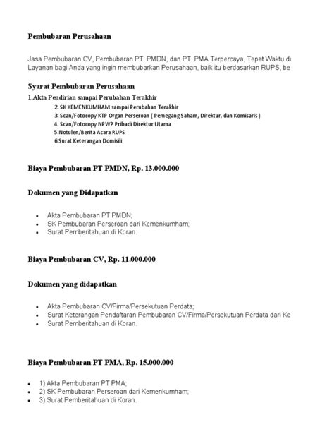 Pembubaran perusahaan adalah proses pengakhiran kegiatan usaha suatu perusahaan secara hukum. Singkatnya, perusahaan itu dinyatakan selesai dan tidak lagi beroperasi. Proses ini melibatkan banyak hal, mulai dari pemberesan aset, pembayaran utang, sampai pelaporan ke instansi pemerintah terkait. Jadi, ini bukan sekadar tutup pintu dan selesai, ya!