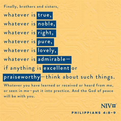 Now, here’s the amazing part, guys. Paul doesn’t just give us a list of things to think about; he tells us why . Verse 9 says: “Whatever you have learned or received or heard from me or seen in me—put into practice what you have learned and received and heard. And the God of peace will be with you.” The practicing of these principles leads to something incredible: the God of peace will be with you. When we intentionally fill our minds with true, noble, right, pure, lovely, admirable, excellent, and praiseworthy thoughts, we create an environment where God’s peace can flourish. It’s not just a fleeting feeling; it’s a deep, abiding sense of well-being that comes from aligning our minds with God’s. This peace is a direct result of obeying this instruction. It’s a promise! When our thoughts are chaotic, anxious, and focused on negativity, peace flees. But when we actively choose to focus on the positive, God-honoring qualities Paul outlines, we invite His presence and His peace into our lives. This peace is a powerful testimony to the world, demonstrating the transformative power of a mind focused on God. It’s the peace that surpasses all understanding, the kind that can sustain us through any storm. So, let’s commit to practicing these truths, and experience the profound peace that God promises to those who do.