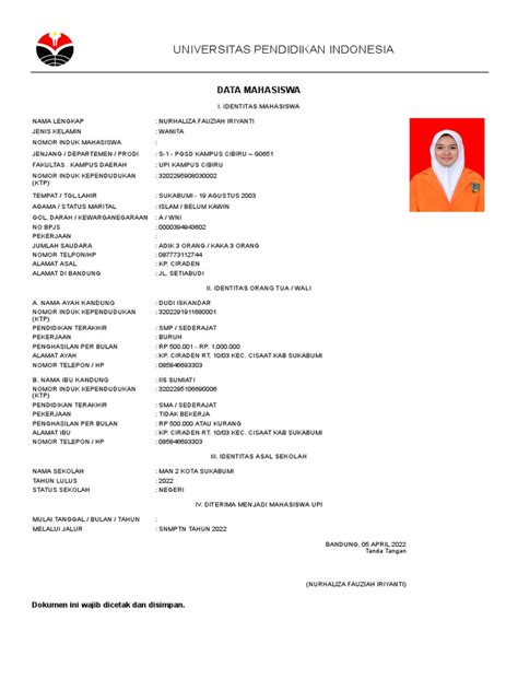 First off, what exactly is the PMB UPI biodata? Simply put, it’s a comprehensive form that UPI uses to gather detailed information about you, the prospective student. This isn’t just about your name and address; it’s a chance for you to showcase your background, academic achievements, extracurricular activities, and other experiences that make you unique. UPI uses this information to get a well-rounded view of you as an individual, which helps them make informed decisions during the admissions process. It’s like telling your story, but in a structured, academic way. Now, you might be wondering why this biodata is so important. Well, it’s because UPI isn’t just looking at your grades. They want to know who you are, what you’re passionate about, and what you bring to the table. Your biodata helps them understand your potential contributions to the university community. Think of it as your personal pitch – a chance to highlight your strengths and demonstrate why you’d be a great fit for UPI.