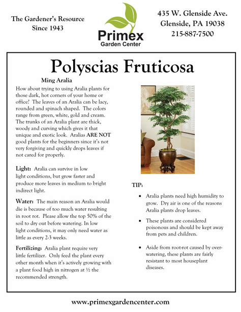 By following these essential care tips, you can ensure that your Polyscias fruticosa thrives and brings its unique beauty to your home for years to come. Remember to pay attention to your plant’s specific needs and adjust your care routine accordingly. With a little bit of love and attention, your Polyscias fruticosa will reward you with its lush foliage and graceful presence.