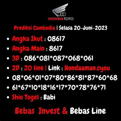 Jadi, buat kamu yang lagi cari-cari prediksi Kamboja , atau pengen tau rahasia di balik angka-angka yang sering keluar, stay tune terus ya! Kita akan bawa kamu ke dunia syair Kamboja yang penuh misteri dan kejutan. Siap-siap buat dapetin jackpot besar! Yuk, kita mulai petualangan seru ini bersama-sama dan jadikan setiap taruhanmu lebih berarti.