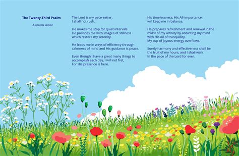 When considering the Japanese interpretation of Psalm 23:4, it’s essential to acknowledge the cultural context. Japanese culture places a high value on harmony, respect, and resilience. The concept of facing adversity with courage and maintaining inner peace is deeply ingrained in the Japanese psyche. This cultural backdrop adds another layer of meaning to the verse.