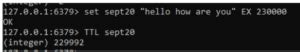 mykeyto expire in 60 seconds. When we check its TTL, it’s around 58 seconds (the slight difference is due to the time taken to execute the commands). -
