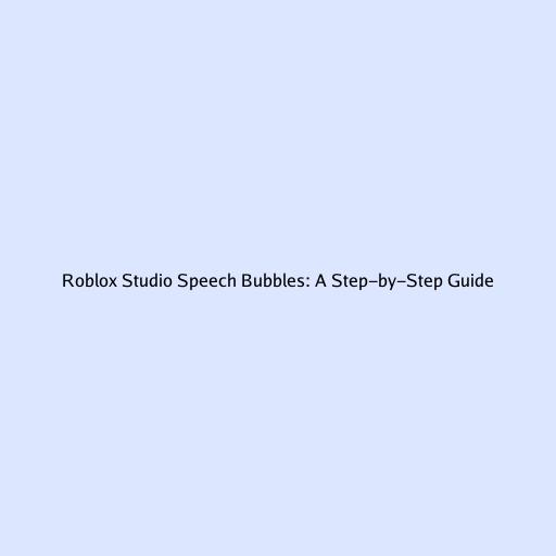 Roblox Studio Speech Bubbles: A Step-by-Step Guide