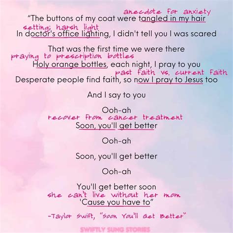 Hey everyone! Today, we’re diving deep into a song that’s really struck a chord with a lot of people: “Soon You’ll Get Better.” You might have heard it and wondered, “What’s this song really about?” Well, guys, you’ve come to the right place. We’re going to break down the lyrics, explore the emotional core of this track, and give you a full understanding of its powerful message. This isn’t just another pop song; it’s a raw, honest outpouring of vulnerability and hope, set against a backdrop of serious personal struggle. Taylor Swift, the mastermind behind this tune, really lays her heart bare, and understanding the context makes the lyrics hit even harder. So, grab a comfy seat, maybe a tissue, and let’s get into it.