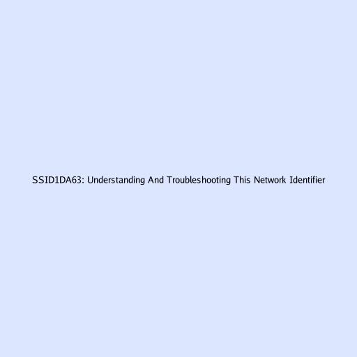 SSID1DA63: Understanding And Troubleshooting This Network Identifier
