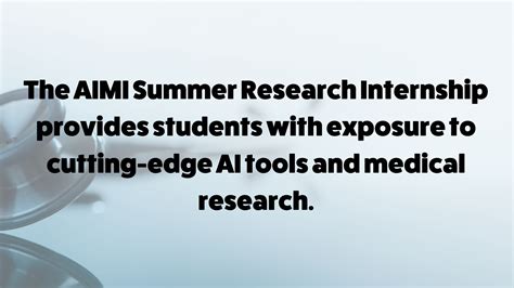 Overall, the Stanford AIMI High School Internship is an exceptional opportunity for high school students who are interested in pursuing a career in AI and medicine. It provides a unique combination of hands-on research experience, educational activities, and networking opportunities. By participating in this internship, you can gain a competitive edge when applying to college, develop valuable skills for your future career, and make a meaningful contribution to the field of artificial intelligence in medicine.