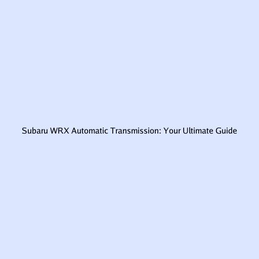 Subaru WRX Automatic Transmission: Your Ultimate Guide