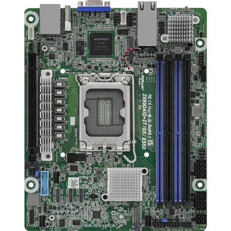 Internal connectors include headers for additional USB ports, front panel audio, and system fans, providing flexibility for system customization.