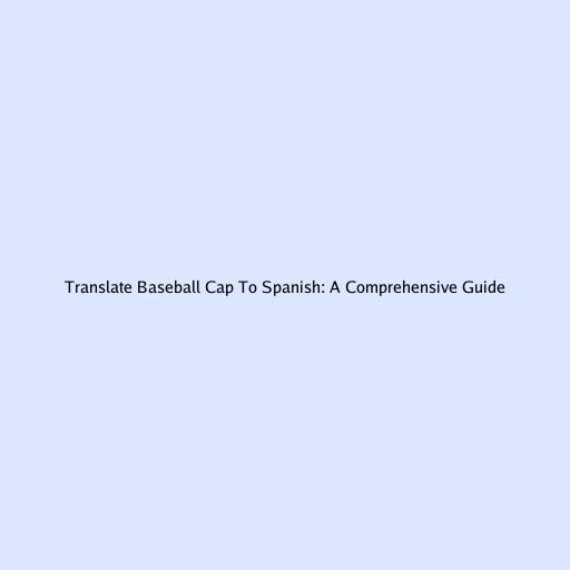 Translate Baseball Cap to Spanish: A Comprehensive Guide