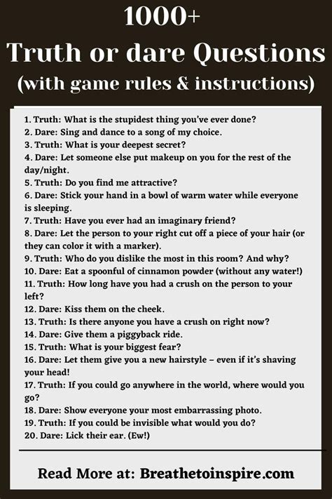Finally, remember to have fun! Truth or Dare is all about laughter, surprises, and creating memories with your friends. So, relax, let loose, and enjoy the moment. Don’t take the game too seriously and be prepared to laugh at yourself and your friends. With these tips in mind, you’re sure to have a blast playing Truth or Dare!