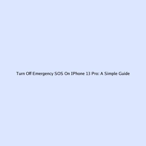 Turn Off Emergency SOS on iPhone 13 Pro: A Simple Guide