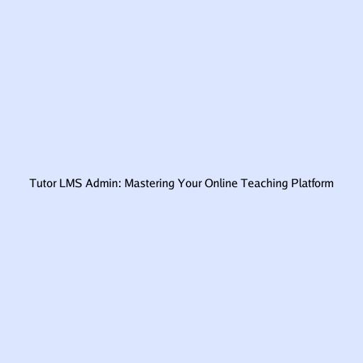 Tutor LMS Admin: Mastering Your Online Teaching Platform