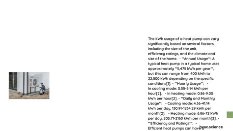 Alright, so you’ve got a heat pump, or you’re thinking about getting one. What makes its heat pump energy usage go up or down? Several things, guys! First off, climate is a massive player. If you live somewhere with mild winters and summers, your heat pump will likely sip energy. It won’t have to work as hard to find heat in the winter or dump it in the summer. But, if you’re in an area with extreme temperatures – think super cold winters or scorching hot summers – your heat pump will definitely be working overtime. This means more energy consumption. Another biggie is the size and efficiency rating of your heat pump. A unit that’s too small will struggle to heat or cool your home effectively, constantly running and using more energy. Conversely, a unit that’s way too big can short-cycle, meaning it turns on and off too frequently, which is also inefficient. And that efficiency rating? Look for SEER (Seasonal Energy Efficiency Ratio) for cooling and HSPF (Heating Seasonal Performance Factor) for heating. Higher numbers mean more bang for your buck, or rather, more heating/cooling per unit of energy used. Think of it like this: a 5-star energy-rated appliance will always use less power than a 2-star one . Then there’s your home’s insulation and air sealing . This is HUGE, guys! If your home is drafty and poorly insulated, your heat pump has to work like crazy to compensate for all the heated or cooled air escaping. Proper insulation in your attic, walls, and crawl spaces, along with sealing up those pesky air leaks around windows and doors, can dramatically reduce your heat pump’s energy load . Installation quality also matters. A poorly installed system, even if it’s a top-of-the-line model, won’t perform as it should and will likely lead to higher energy bills. Finally, how you use your thermostat plays a significant role. Constantly cranking the temperature up or down negates the efficiency benefits. Using a programmable or smart thermostat to set back temperatures when you’re away or asleep can lead to substantial energy savings. So, when you’re assessing your heat pump energy usage , remember it’s a whole ecosystem of factors, not just the unit itself!
