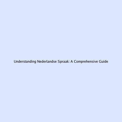 Understanding Nederlandse Spraak: A Comprehensive Guide