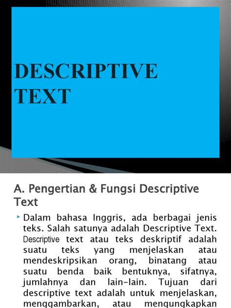 Essentially, descriptive text is all about painting a picture with words. It’s the writer’s toolkit for engaging your senses – sight, sound, smell, taste, and touch. Think of it as the difference between saying “The dog was there” and “A scruffy, brown terrier with one floppy ear and a tail that wagged like a metronome bounded towards me, its happy barks echoing in the crisp morning air.” See the difference? The second one makes the dog come alive, right? That’s the power of good description. The main purpose of descriptive text is to create a vivid, immersive experience for the reader. It’s not just about relaying information; it’s about making that information felt . When you’re writing, whether it’s a novel, a blog post, or even an email, using descriptive language helps your audience connect with your subject on a deeper level. It builds atmosphere, evokes emotions, and makes your writing memorable. Without it, your words can fall flat, leaving your readers feeling detached and uninterested. So, if you want your writing to have impact, you’ve got to get good at describing things!