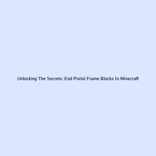 Unlocking the Secrets: End Portal Frame Blocks in Minecraft