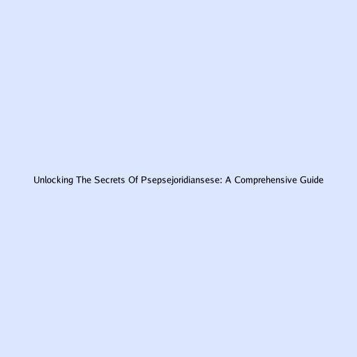 Unlocking the Secrets of Psepsejoridiansese: A Comprehensive Guide