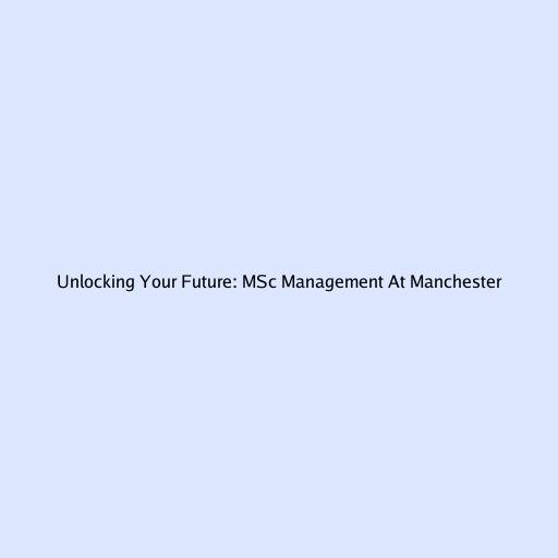 Unlocking Your Future: MSc Management At Manchester