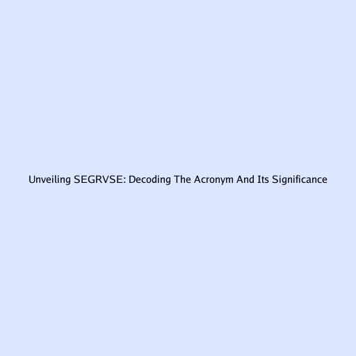 Unveiling SEGRVSE: Decoding the Acronym and Its Significance