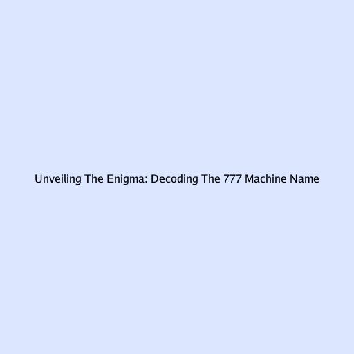 Unveiling The Enigma: Decoding The 777 Machine Name