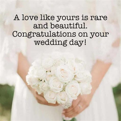 • “Congratulations on your wedding day! May your marriage be filled with all the joy, love, and companionship you both deserve. Here’s to a lifetime of cherished memories.”