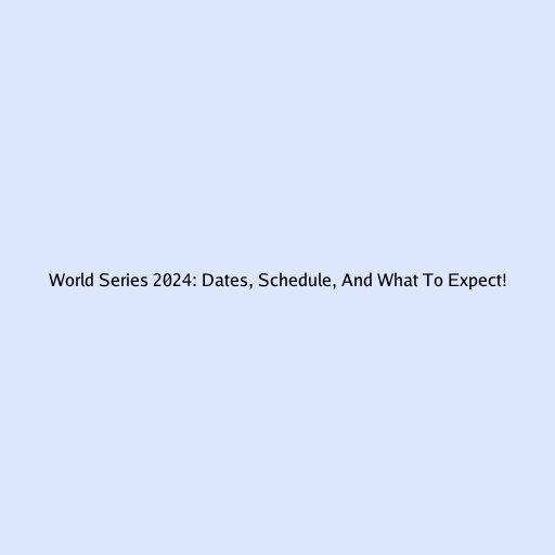 World Series 2024: Dates, Schedule, and What to Expect!